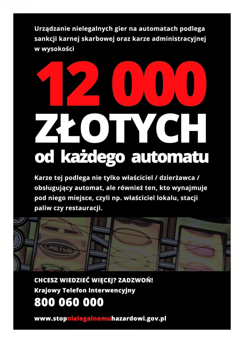 Wszelkie informacje w tej sprawie można uzyskać pod numerem Krajowego Telefonu Interwencyjnego 800 060 000 oraz na stronie internetowej www.stopnielegalnemuhazardowi.pl
