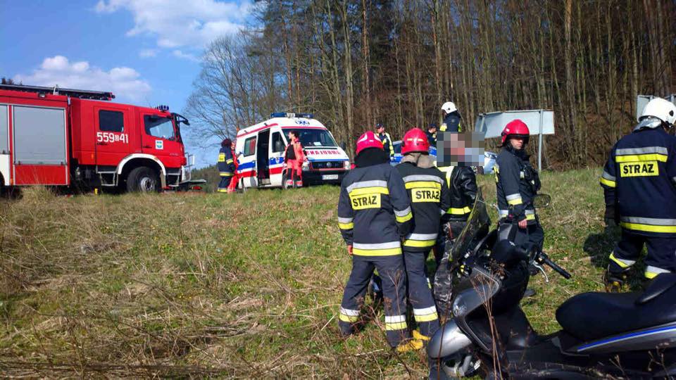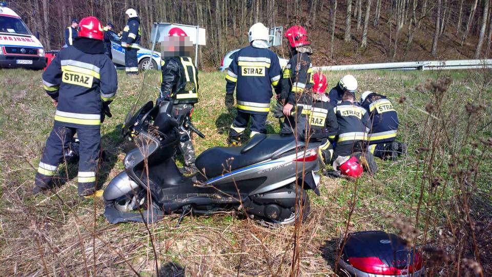 W Koleczkowie również doszło do wypadku z udziałem motocyklisty. Kierujący stracił panowanie nad jednośladem, ranne zostały dwie osoby. Na miejscu zdarzenia działały cztery jednostki straży pożarnej
