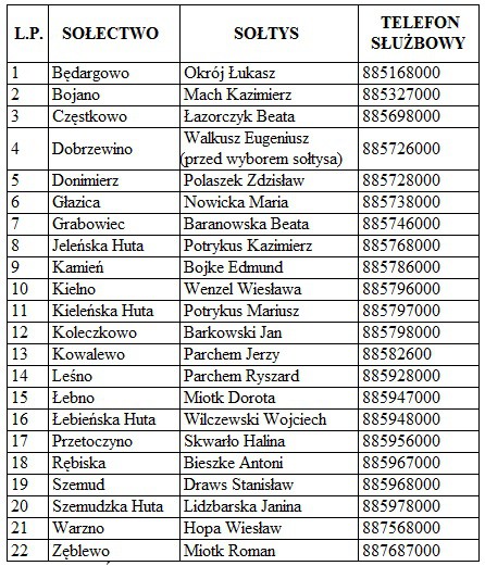 Wszelkich informacji związanych z akcją udzielają sołtysi (wykaz poniżej) oraz Referat Ochrony Środowiska i Gospodarki Odpadami (tel. 58/676-44-24, 676-44-25).