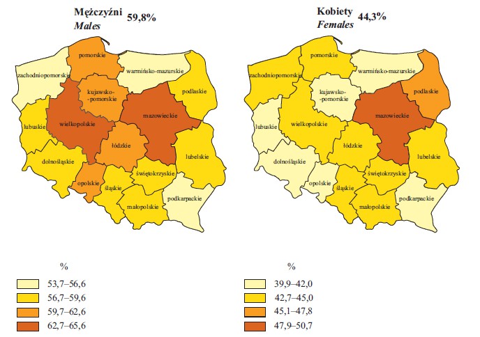 Jak wygląda sytuacja w województwie pomorskim? Na Pomorzu pracuje zdecydowanie więcej mężczyzn (65.1 proc.) niż kobiet. W najtrudniejszej sytuacji są osoby z wykształceniem gimnazjalnym, podstawowym lub niepełnym podstawowym, spośród których pracuje niespełna 20 procent. Spośród 1,82 mln mieszkańców województwa w wieku produkcyjnym ponad 803 tysiące pozostaje biernych zawodowo. Często przyczyną takiego stanu rzeczy jest niedostosowanie kwalifikacji pracowników do oczekiwań pracodawców. Pełna treść raportu GUS została opublikowana na stronie.