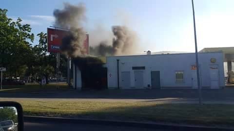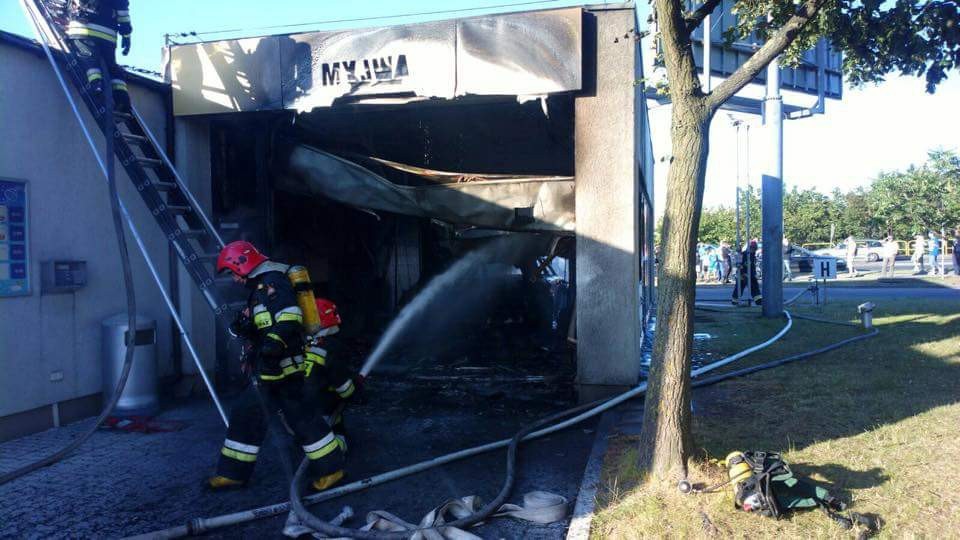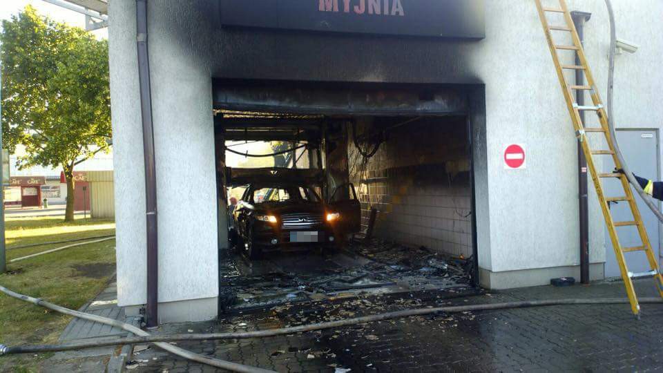Do pożaru doszło około godziny 19:00. Ogniem zajął się samochód osobowy, znajdujący się pod zadaszeniem myjni, mieszczącej się przy stacji paliw.