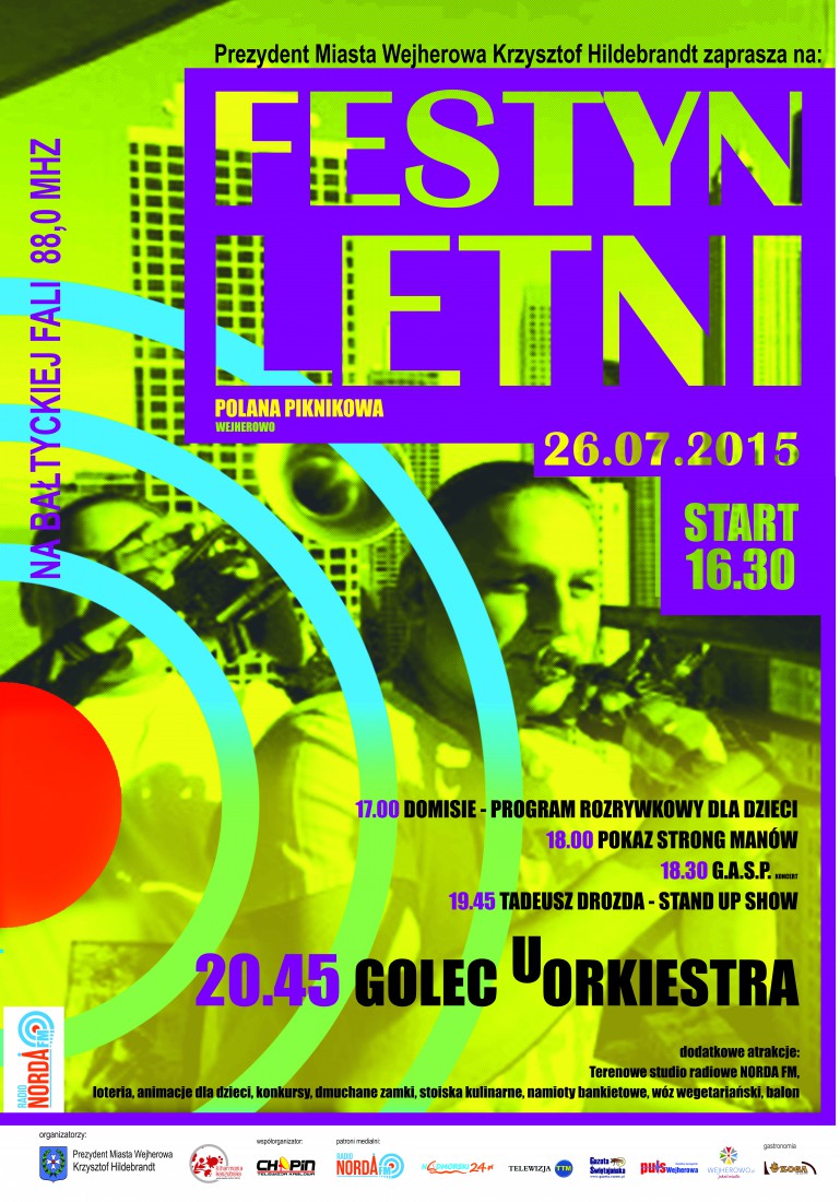 Golec uOrkiestra, Tadeusz Drozda, mnóstwo konkursów z super nagrodami, pokaz strongman, atrakcje dla dzieci i wiele innych niespodzianek – to wszystko czeka na Was podczas Festynu Letniego z okazji startu radia Norda FM w eterze! Festyn będzie transmitowany na żywo w Twojej Telewizji Morskiej oraz na portalu Nadmorski24.pl. Oprócz tego relację z wydarzenia będzie można usłyszeć, również na żywo, w radiu Norda FM!