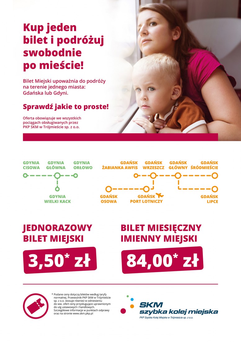 Bilet jednorazowy strefowy w granicach jednego miasta: Gdańska lub Gdyni tak zwany „Bilet Miejski” będzie kosztował 3,50 zł, przy czym rozszerzono ofertę o nowe przystanki Gdańsk Rębiechowo i Gdańsk Osowa oraz Gdynię Wielki Kack.