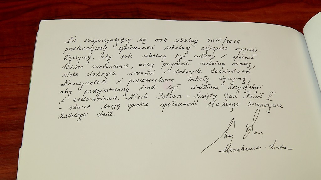 - Szkoła jest piękna i można ją stawiać za wzór. Dobrze, że właśnie w niej zaczynacie swój pierwszy lub kolejny rok nauki. Chciałbym wam złożyć najlepsze życzenia. Żeby ten rok szkolny szybko i lekko wam minął i zakończył się, jak najlepszymi rezultatami. Szybko i lekko czas mija, kiedy człowiek pracuje lub uczy się z przyjemnością. Chciałbym, żeby ten rok szkolny właśnie dla was taki był - mówił Andrzej Duda, prezydent Polski.