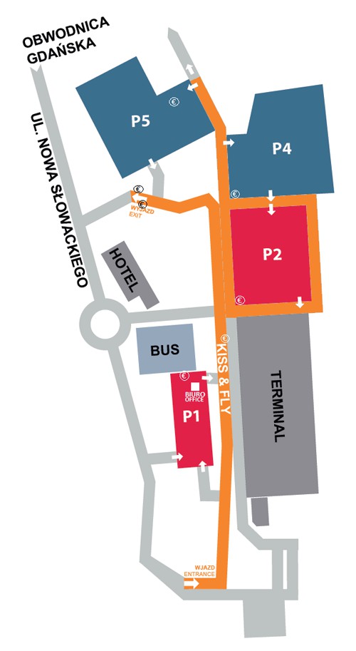 Dostępny jest także nowy parking krótkoterminowy P1, zlokalizowany bezpośrednio przed nowym terminalem. Wyjazd ze strefy Kiss&Fly będzie możliwy nowym wyjazdem głównym, który zlokalizowany jest za hotelem Hampton by Hilton lub wyjazdem dodatkowym przy terminalu Cargo.