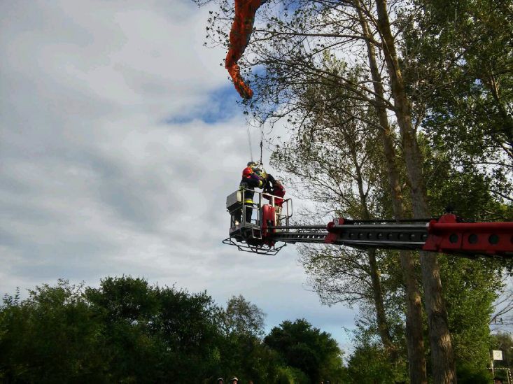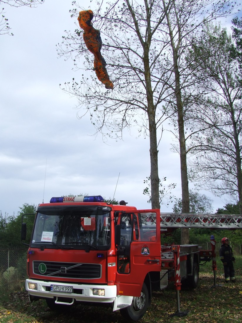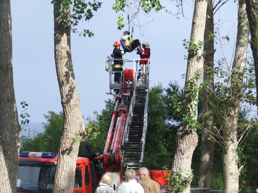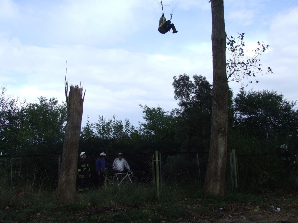 Straż Pożarna wycięła krzewy znajdujące się pod uwięzioną paralotniarką oraz wycięła pień drzewa znajdujący się na terenie ośrodka, tak aby bezpiecznie można było podstawić podnośnik.