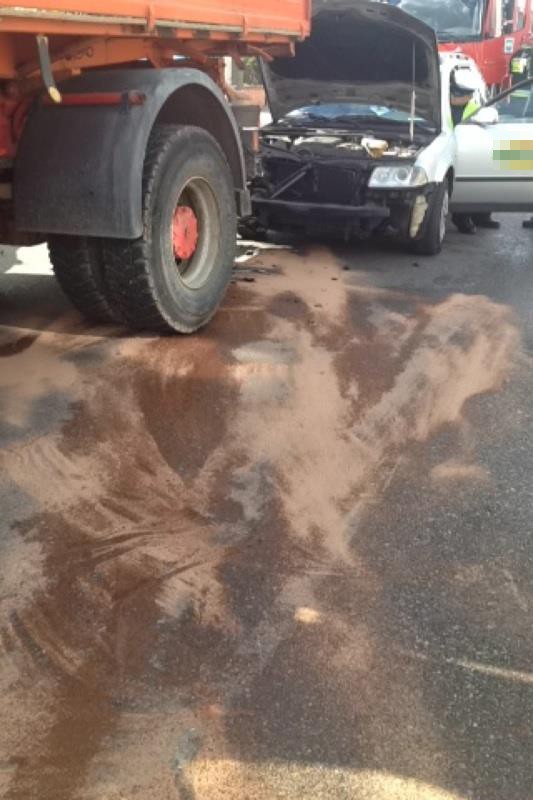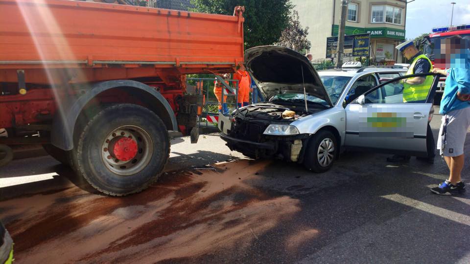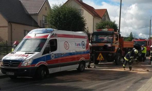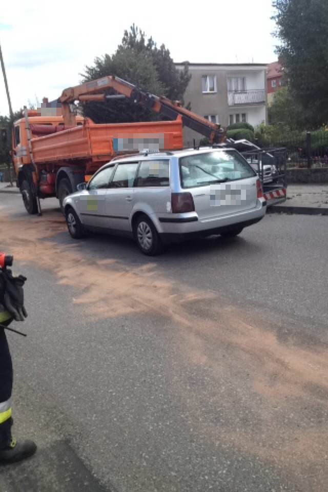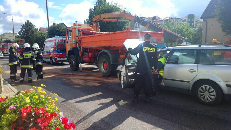 W Redzie na ulicy Łąkowej zderzyły się dwa auta - samochód ciężarowy i osobówka. Droga jest częściowo nieprzejezdna.