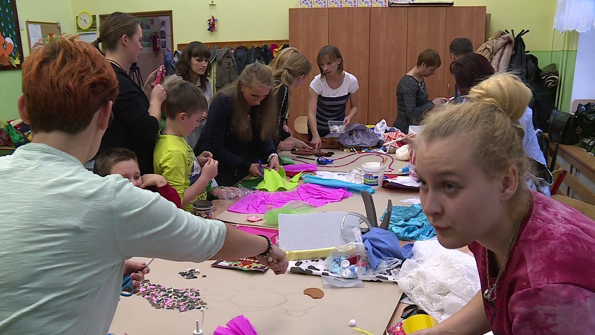 Podczas spotkania połączonego z warsztatami artyści przeczytali bajki, które dzięki kreatywności niepełnosprawnych intelektualnie dzieci, zyskały malowniczą rzeczywistość. Najmłodsi pomogli stworzyć świat, w którym żyje wiewiórka Kitka, leśny skrzat, a także miś szukający serca.
