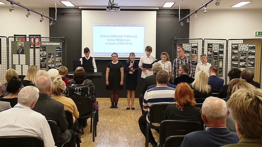 Podczas uroczystości nie zabrakło okolicznościowych życzeń, podziękowań i gratulacji. Wydarzenie wzbogaciły również występy lokalnej młodzieży. Oprócz bogatego programu artystycznego na gości czekała również prezentacja multimedialna pt. „Historia Biblioteki Publicznej Gminy Wejherowo w latach 1960-2015”, którą przygotowała dyrektor instytucji.
