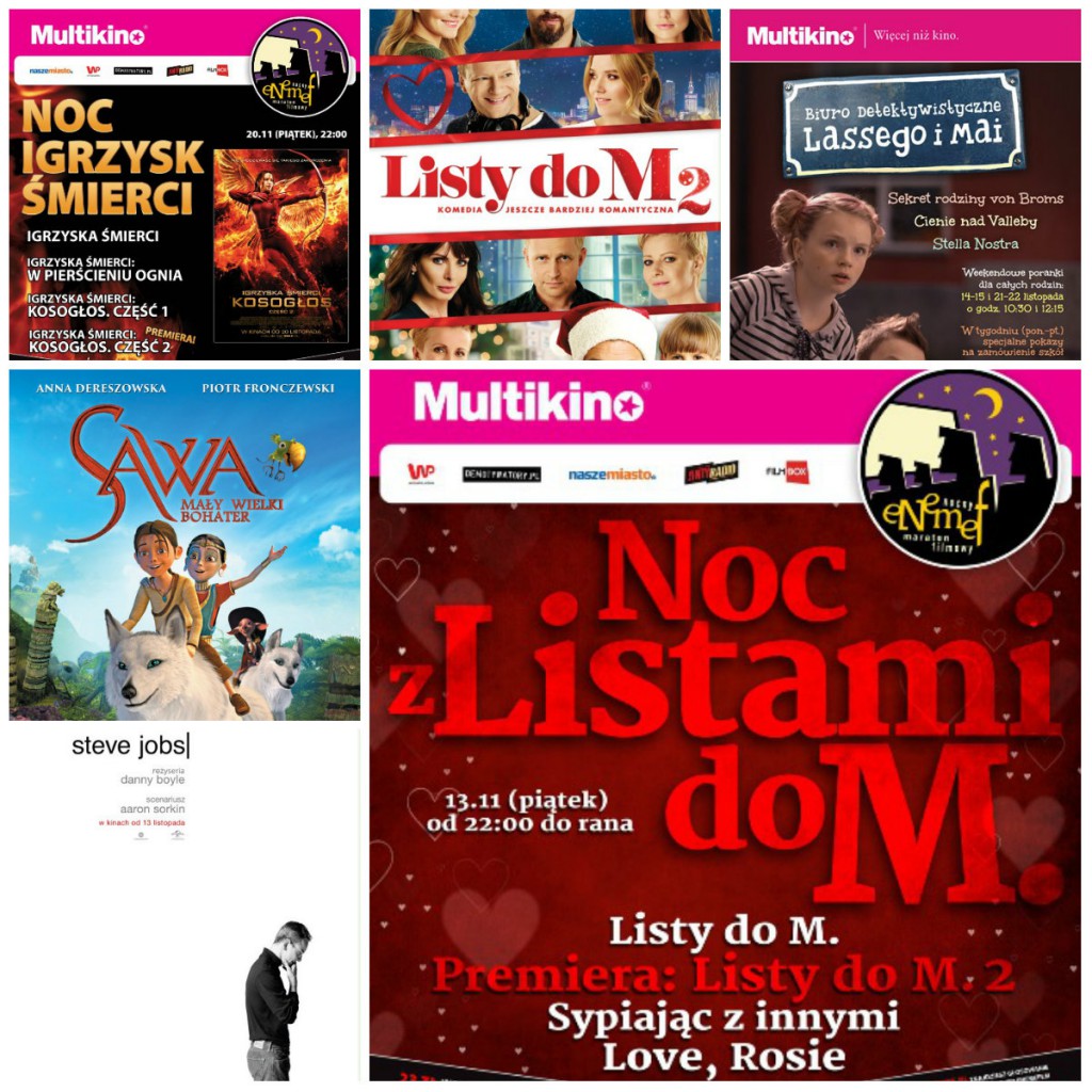 W najbliższy piątek 13 listopada premierę będą miały: „Listy do M. 2” oraz „Steve Jobs”. Natomiast w ramach akcji „Rodzina leci do kina” rodzice z dziećmi będą mogli zobaczyć film „Sawa. Mały wielki bohater”. Ponadto w listopadzie na widzów odwiedzających kina sieci Multikino czeka wiele ciekawych wydarzeń specjalnych.