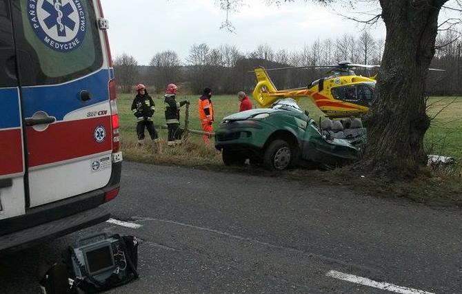 Wypadek drogowy w Rybnie (powiat wejherowski). Z naszych informacji wynika, że jedna osoba została ranna. Kobieta kierująca samochodem Daewoo Matiz uderzyła w drzewo. Na miejsce przyleciał śmigłowiec Lotniczego Pogotowia Ratunkowego.