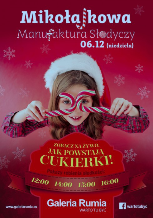Mikołajkowa Manufaktura Słodyczy - Pracowite Elfy Świętego Mikołaja zapraszają wszystkie małe i duże dzieci do Mikołajkowej Manufaktury Słodyczy! Dowiecie się, zobaczycie i sami spróbujecie, jak to jest stworzyć prawdziwe świąteczne słodycze! Więcej informacji TUTAJ.