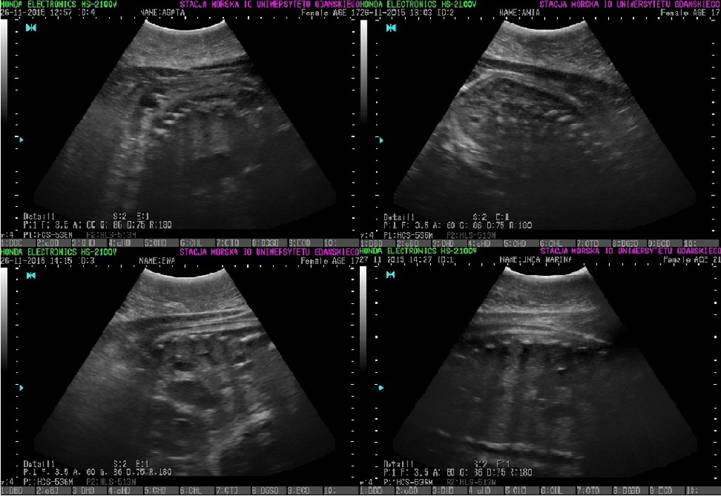 W związku z zaobserwowaniem zmiany apetytu opiekunowie zdecydowali o wykonaniu badania USG dla zweryfikowania, czy samice są ciężarne.