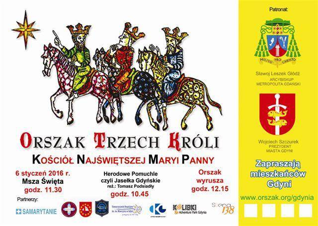 W środę 6 stycznia 2016 roku, ulicami Gdyni przemaszeruje tradycyjnie Orszak Trzech Króli. O godzinie 12:00 wyruszy sprzed Kościoła Najświętszego Serca Pana Jezusa przy ul. Armii Krajowej 46. Msza święta o godzinie 11.00.