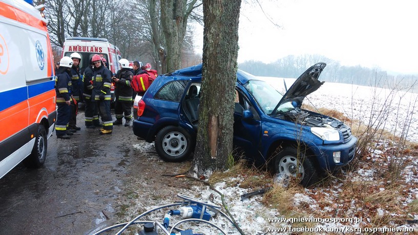 - Po przybyciu na miejsce zdarzenia zastano samochód osobowy, który uderzył bokiem od strony pasażera w przydrożne drzewo. Pojazdem podróżowały 4 osoby, które w wyniku zderzenia odniosły obrażenia ciała. Kierowca wraz z jednym pasażerem znajdowali się na zewnątrz pojazdu, natomiast dwoje pozostałych pasażerów znajdowało się w samochodzie. Nasze działania w pierwszej fazie polegały na zabezpieczeniu miejsca zdarzenia oraz udzielaniu kwalifikowanej pierwszej pomocy poszkodowanym osobom. Jednocześnie przystąpiono do wykonania dostępu do osób poszkodowanych w pojeździe, gdzie konieczne było użycie narzędzi hydraulicznych. Po dokonaniu dostępu do osób poszkodowanych udzielano im również kwalifikowanej pierwszej pomocy - informuje OSP Choczewo.