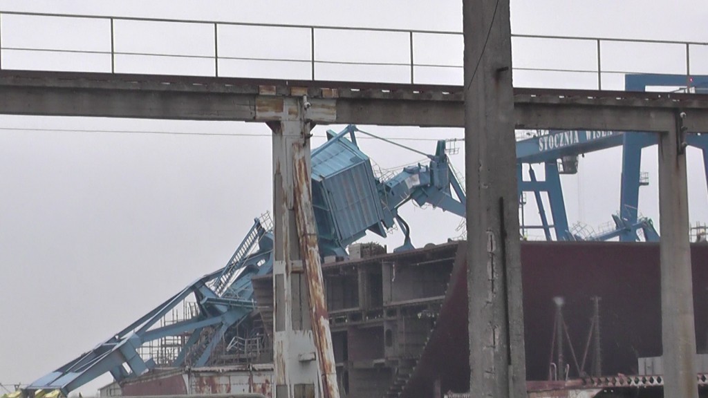 Wypadek miał miejsce w Stoczni Wisła w Gdańsku. 20-metrowa metalowa konstrukcja, która waży kilkaset ton przewróciła się na stojący obok kadłub budowanego statku. Wśród rannych jest operator dźwigu. Przyczyny wypadku wyjaśniają inspektorzy Państwowej Inspekcji Pracy oraz policja.