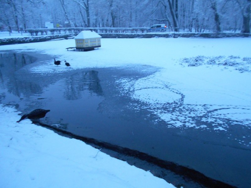 W czwartek (14 stycznia) około godziny 19:40 na lodzie w parku miejskim znaleziono martwego czarnego łabędzia. Wszystko wskazuje na to, że samica została zagryziona przez lisy.