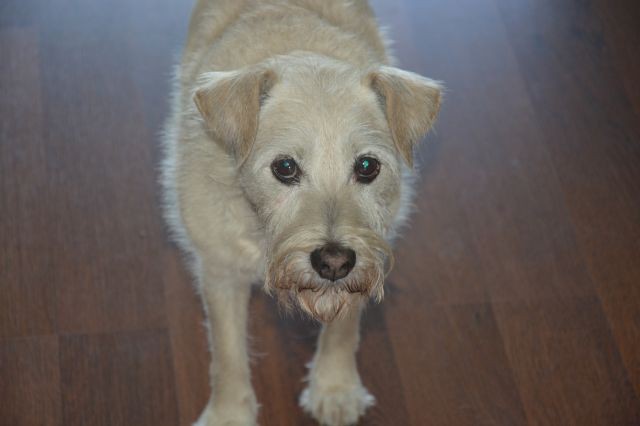 Pies jest kudłaty, biało-kremowy, z długim ogonem, około 30 cm wysokości. Jest obecnie w trakcie leczenia, choruje też na padaczkę, jest głuchawy, miał zaplanowany zabieg operacyjny. Pies ma wszczepionego chipa.