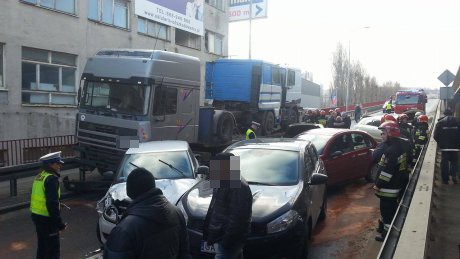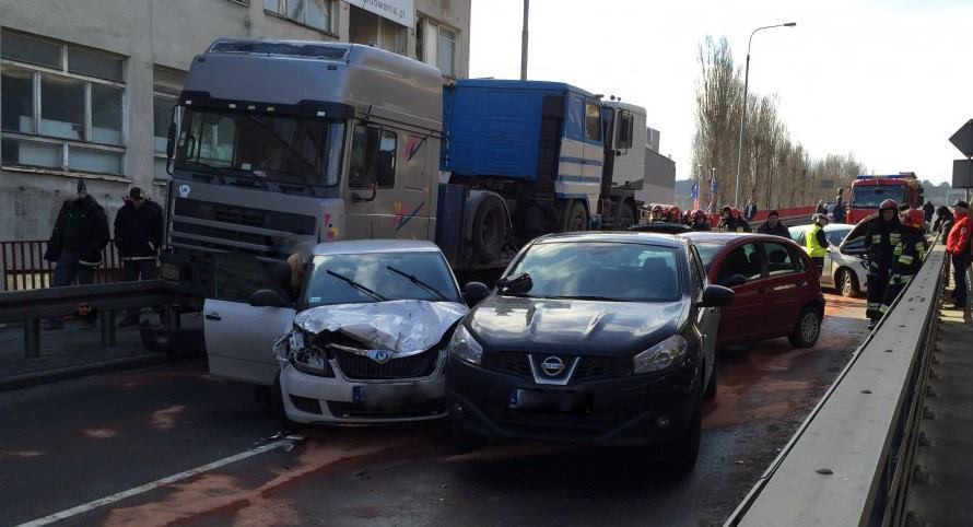 Dwa samochody dostawcze i sześć aut osobowych zostało staranowanych przez ciężarówkę. Na szczęście w zdarzeniu nikt nie ucierpiał.