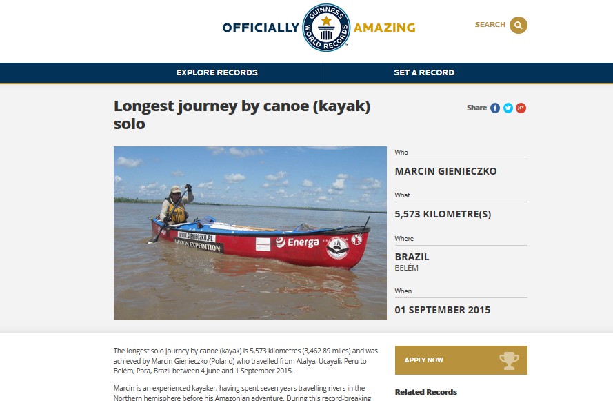 Weryfikacja wszystkich materiałów i dokumentów trwała prawie 5 miesięcy. Podróżnik dostarczył specjalistom między innymi: telefony, adresy świadków, zapisy dwóch GPS-ów, około 15 godzin materiałów filmowych, ponad 400 fotografii, a nawet potwierdzenia miejscowych urzędów, jednostek policji i Marynarki Wojennej w Peru oraz Brazylii. Po kilku miesiącach szczegółowej analizy, nazwisko Marcin Gienieczko znalazło się w Księdze Rekordów Guinnessa.
