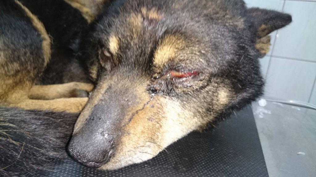 Ranny pies trafił do Dąbrówki. Potrzebuje kosztownego leczenia