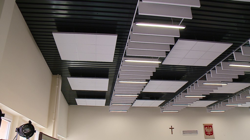 Ostatecznie udało się zmodernizować oświetlenie i znacznie poprawić estetykę oraz akustykę pomieszczenia.