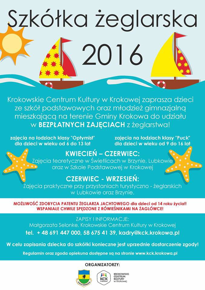 Dzieci ze szkół podstawowych i gimnazjów, mieszkające na terenie gminy Krokowa, mogą wziąć udział w bezpłatnych zajęciach z żeglarstwa.