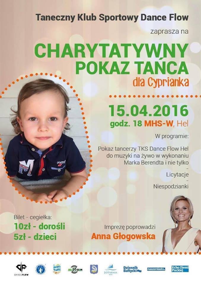 Kolejne charytatywne wydarzenie to piątkowy pokaz tańca w Helu, który zainicjowali tancerze studia Dance Flow. Występ rozpocznie się o godzinie 18:00 w Miejskiej Hali Sportowej. Wydarzenie poprowadzi słynna tancerka i konferansjerka - Anna Głogowska.