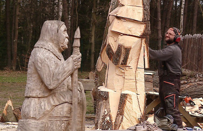 Warkot pił mechanicznych, sterta wiórów i kaszubskie wierzenia – tak w dużym skrócie można opisać trwający w Osadzie Sławutowo plener rzeźbiarski. W wydarzeniu uczestniczy 10 śmiałków z całej Polski, wszyscy zobligowali się w zaledwie kilka dni stworzyć drewniane podobizny pradawnych kaszubskich bożków i duchów.