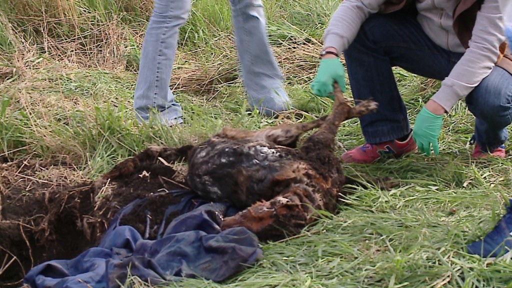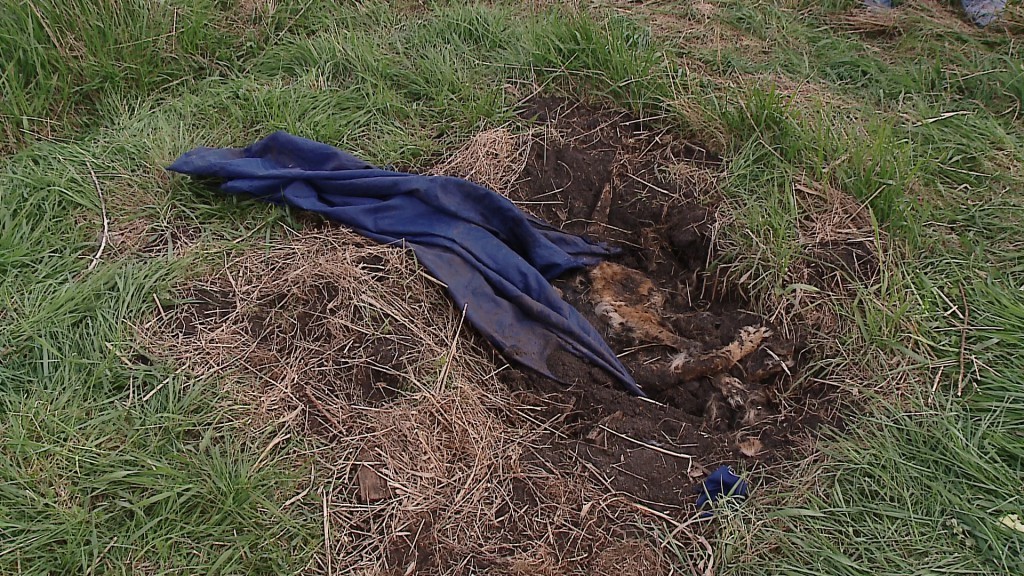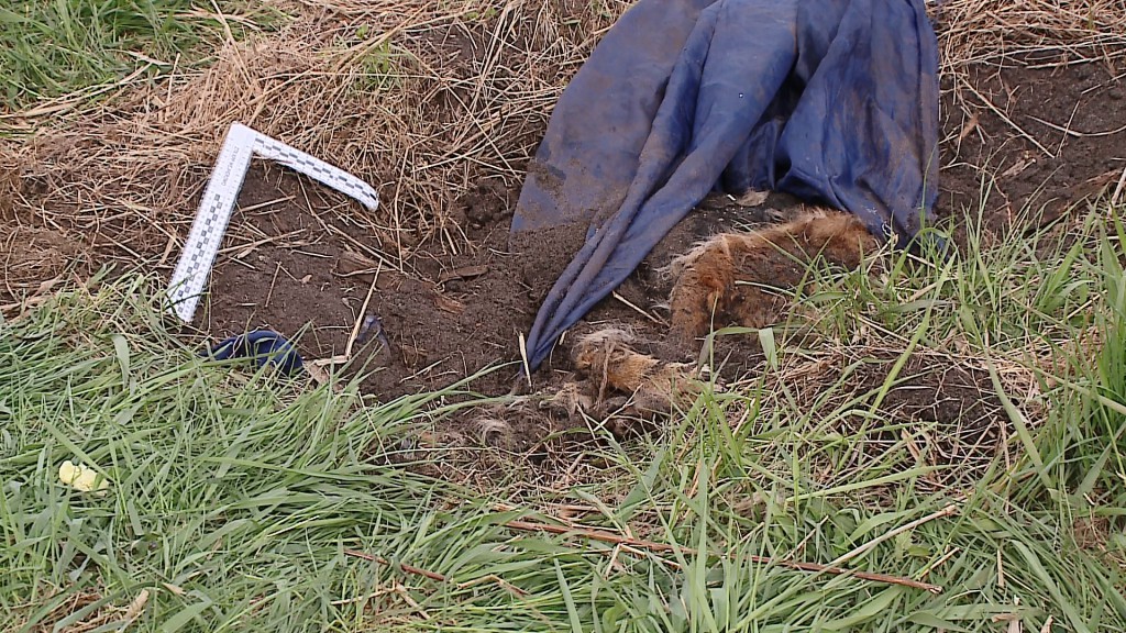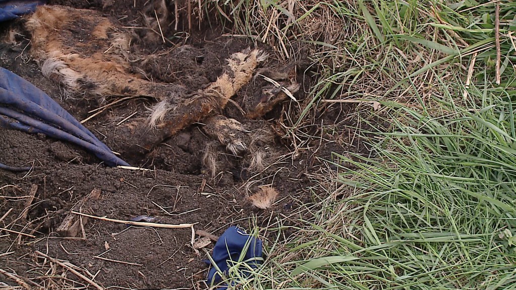 Na rozkładające się zwłoki psa natrafiły bawiące się w pobliżu dzieci. Martwe zwierzę ma rudą sierść, jest średniej wielkości, waży około 30 kilogramów. Ciało było przykryte kawałkiem błękitnego materiału, a łapy psa były związane, co może sugerować, że został on zakopany żywcem.