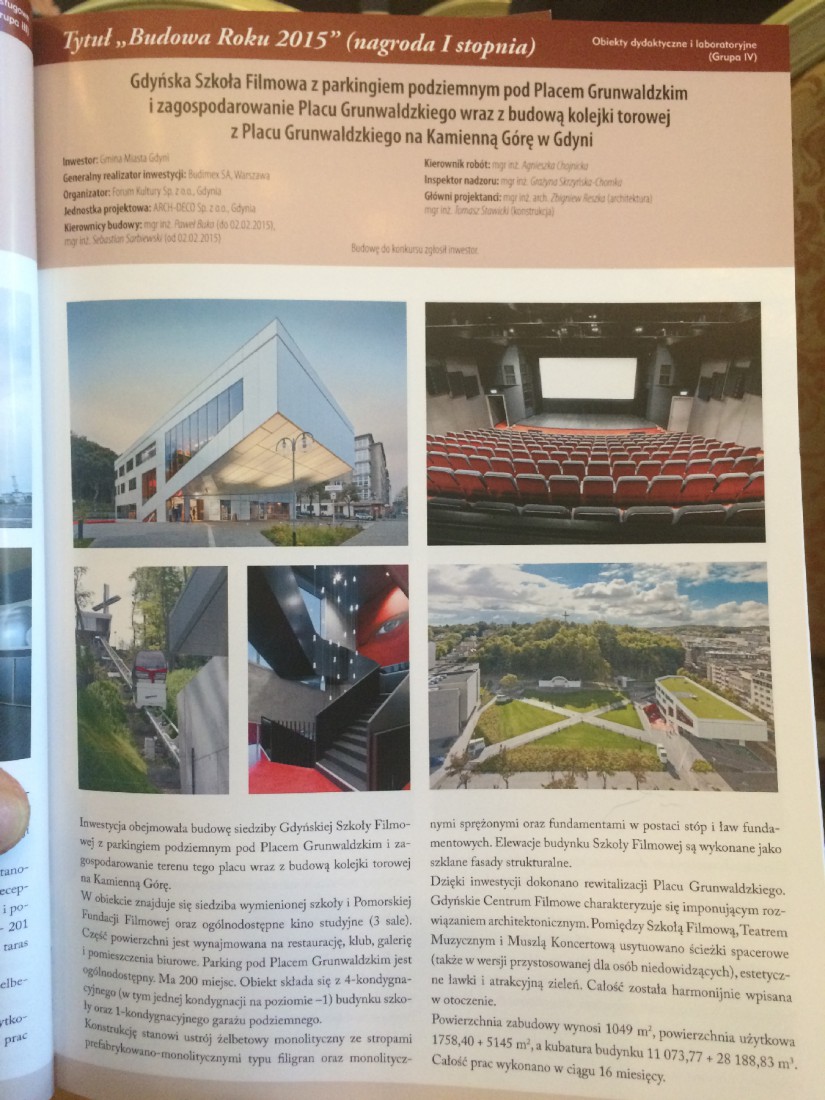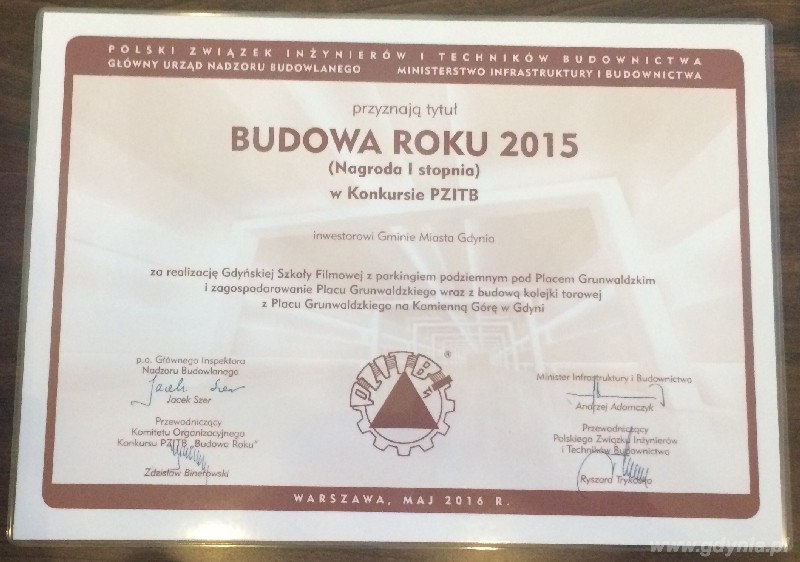 Rozstrzygnięcie XXVI edycji konkursu odbyło się we wtorek (24 maja) w Warszawie. Nagrodę dla Gdyńskiego Centrum Filmowego odebrali wiceprezydent Gdyni Michał Guć oraz Markos Pagudis - prezes Agencji Rozwoju Gdyni. Inwestycja zwyciężyła w kategorii projektów do 100 mln złotych. Nagrodę przyznano za „wyróżniające się wyniki realizacyjne".