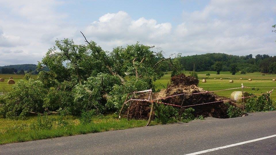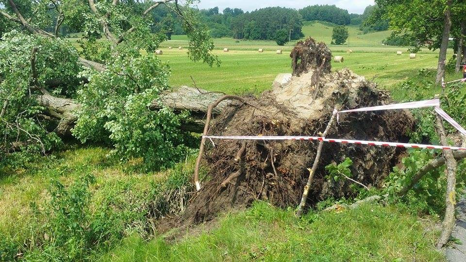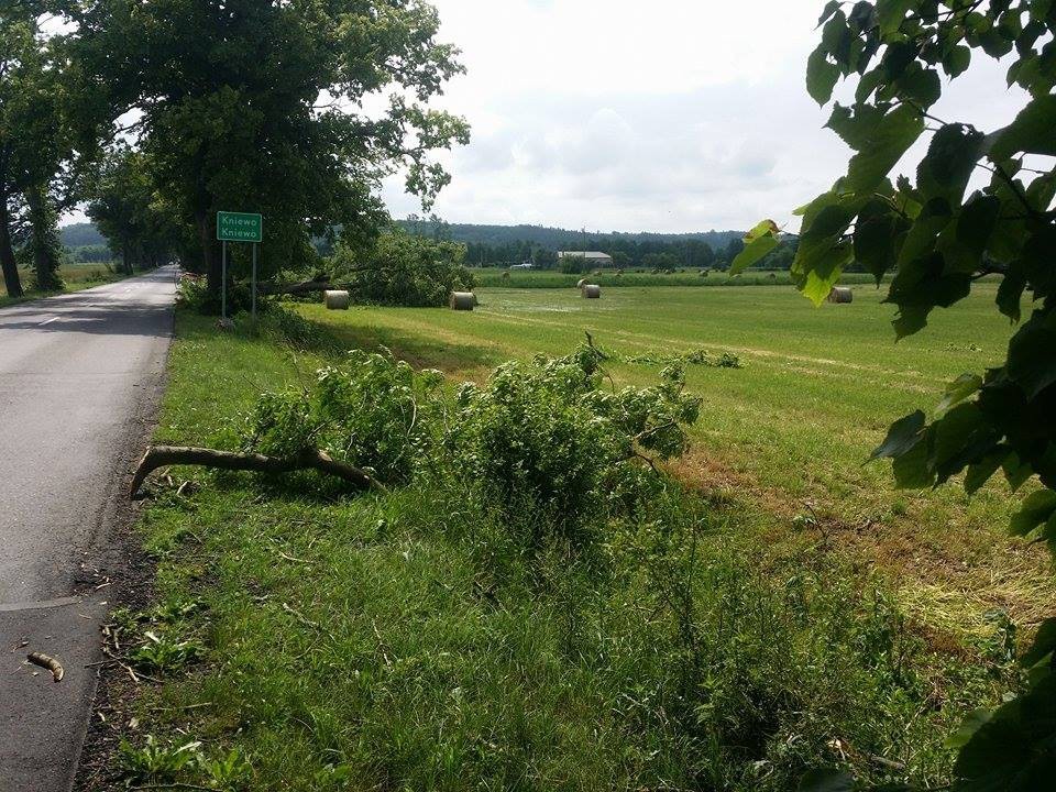 W związku z nawałnicą ulewa i silny wiatr połamały gałęzie drzew w okolicach Kniewa i Warszkowa.