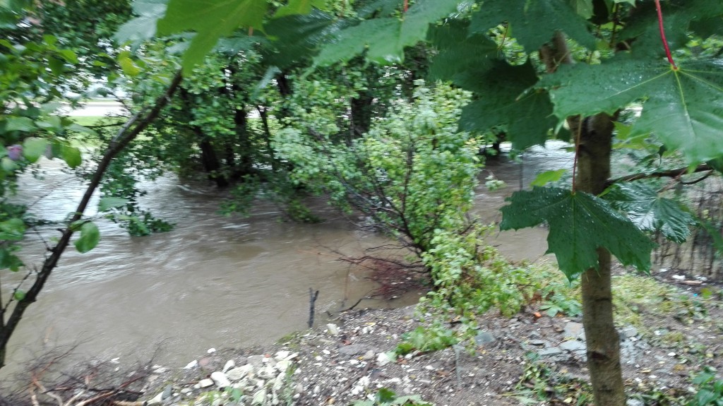 Bolszewo ulica Wodna: Woda wylewa się z rzeki i jest coraz bliżej posesji: