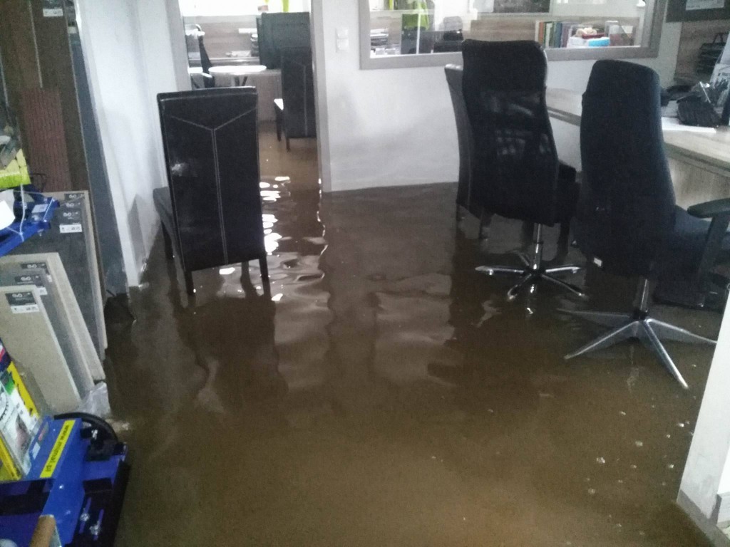 Woda utrzymuje się na ulicy Mickiewicza w Gościcinie, wdarła się także do pomieszczeń jednej z firm.