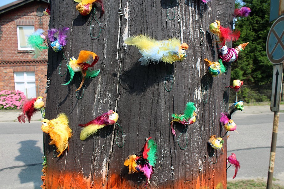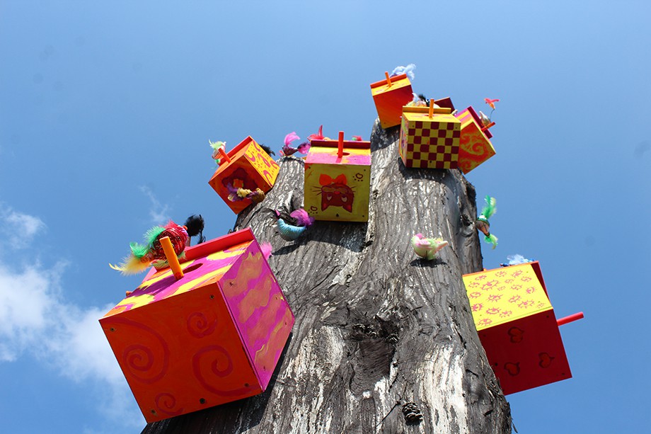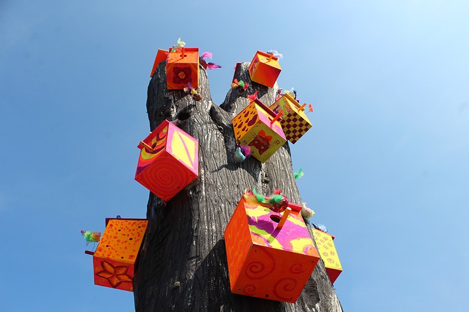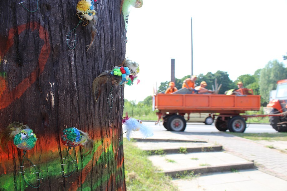 Oprócz pomalowanych na neonowe kolory budek, na kikucie stojącego za siedzibą straży pożarnej drzewa pojawiły się także różnobarwne ptaki. Wszystko to zostało stworzone podczas warsztatów letnich dla dzieci, które odbywały się w Fabryce Kultury. Projekt nosił nazwę „Drzewo”.
