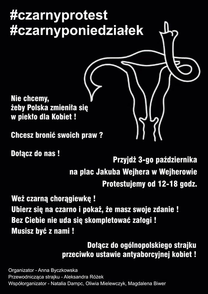 Wejherowskie aktywistki i inne chętne kobiety spotykają się w poniedziałek (3.10) o godzinie 12:00 na Placu Wejhera.