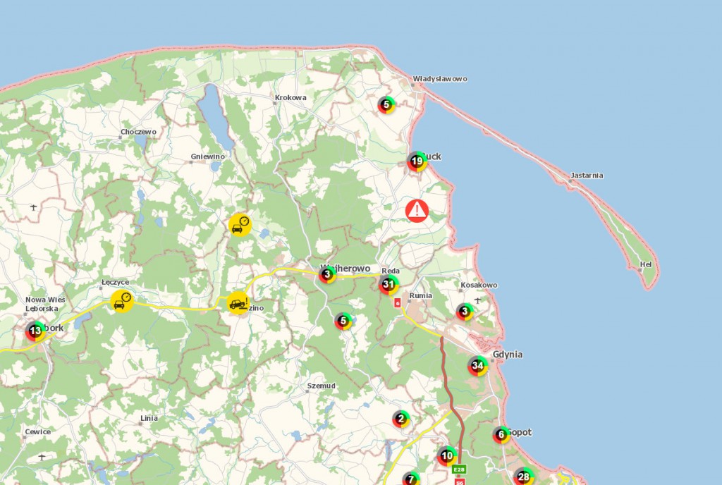 W samym Małym Trójmieście Kaszubskim na mapie jest naniesionych obecnie ponad 30 zgłoszeń. Dotyczą one między innymi nieprawidłowego parkowania na ulicy Sportowej w Redzie, spożywana alkoholu w okolicy ulicy Kaszubskiej w Wejherowie czy nieprawidłowego oznakowania drogi przy ulicy Judyckiego. Z kolei w powiecie puckim na mapie jest aktywnych ponad 20 zgłoszeń, a wśród nich przekraczanie dozwolonej prędkości na drodze wojewódzkiej nr 216 w Swarzewie czy spożywanie alkoholu nieopodal ulicy I Armii WP.