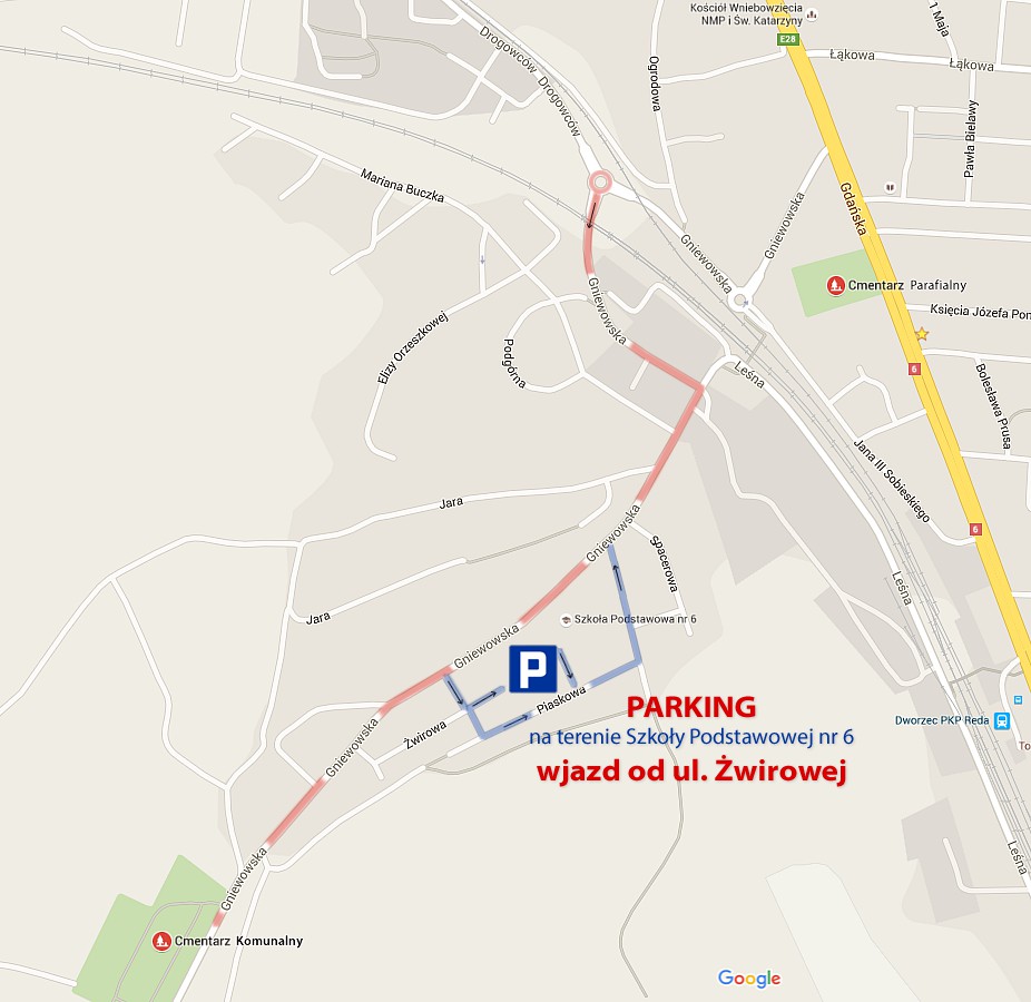 Na terenie Szkoły Podstawowej nr 6 zostanie udostępniony dodatkowy parking z wjazdem od ulicy Żwirowej. Samochody można również zostawić na parkingach niezbyt oddalonych od cmentarza, np. przy sklepie POLO lub wzdłuż ulicy Sobieskiego.