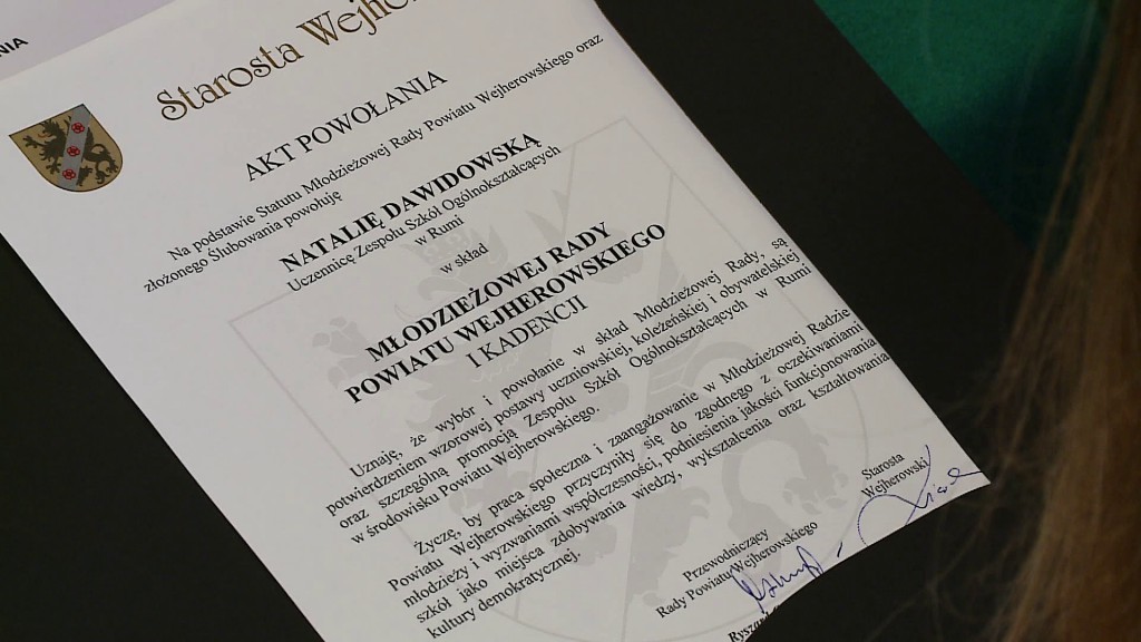 Za nami pierwsze oficjalne obrady Młodzieżowej Rady Powiatu Wejherowskiego. We wtorek (13 grudnia) w starostwie spotkali się uczniowie szkół ponadgimnazjalnych. Głównym punktem wydarzenia był wybór przewodniczącego oraz wręczenie aktów nadania.