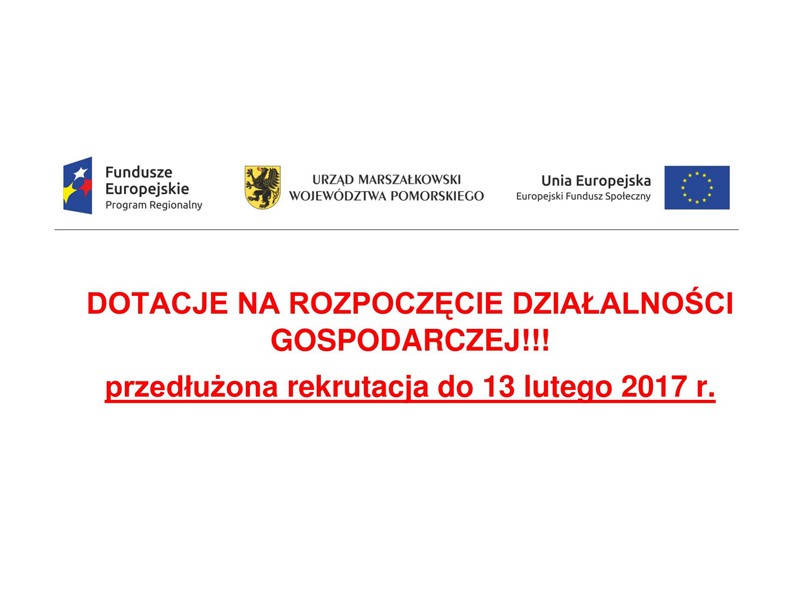 Wszystkie informacje na stronie: http://www.powiat.wejherowo.pl/ w zakładce: PROJEKT „Wsparcie przedsiębiorczości na Kaszubach” – Ruszają dotacje!