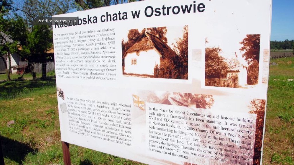 Powiat pucki i gmina Władysławowo przekazały Muzeum Ziemi Puckiej środki na sfinansowanie rekonstrukcji Kaszubskiej Chaty w Ostrowie. Obiekt pochodzi z XVIII wieku i mimo że nie jest wpisany do rejestru zabytków, to z pewnością stanowi dużą wartość historyczną.
