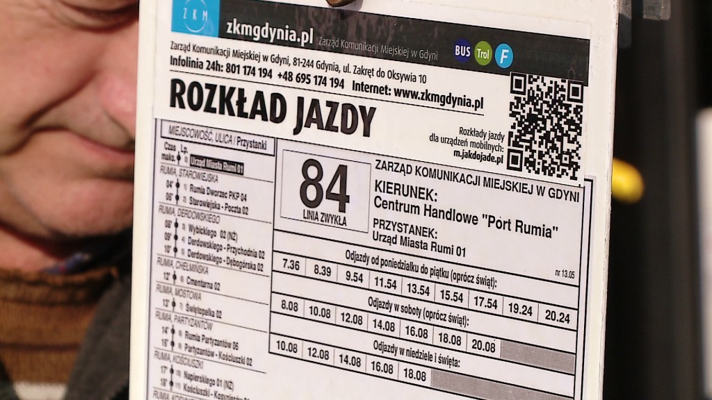 Linia 84 będzie kursować ze Szmelty przez dworzec, przychodnię zdrowia, starą Rumię, ulicę Partyzantów, Kościuszki, aż do centrum handlowego Port Rumia. Autobus będzie odjeżdżał ze Szmelty co dwie godziny, natomiast spod dworca co godzinę.
