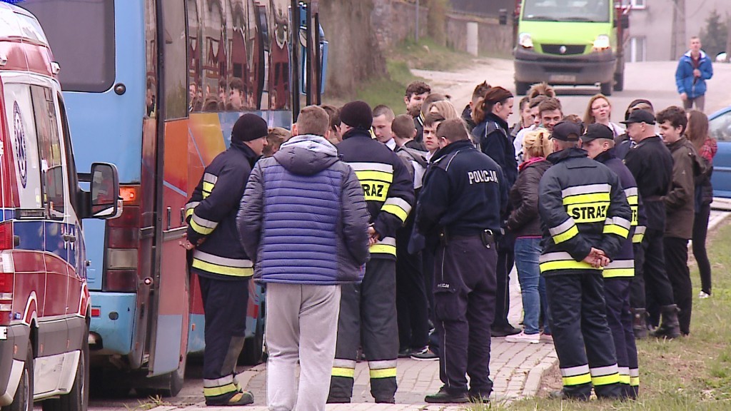 Na miejsce przyjechała policja, straż pożarna oraz pogotowie. Ewakuowano 30 osób, uczniów oraz opiekuna.