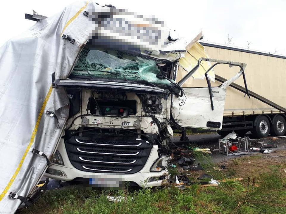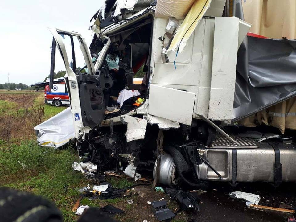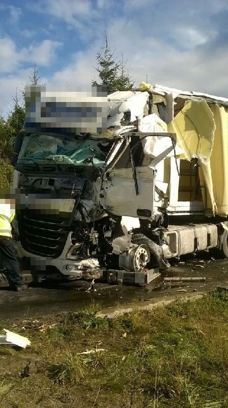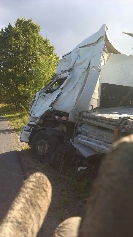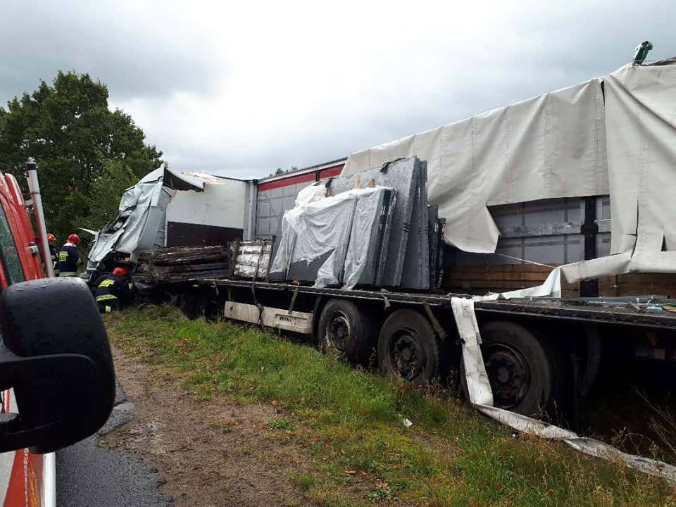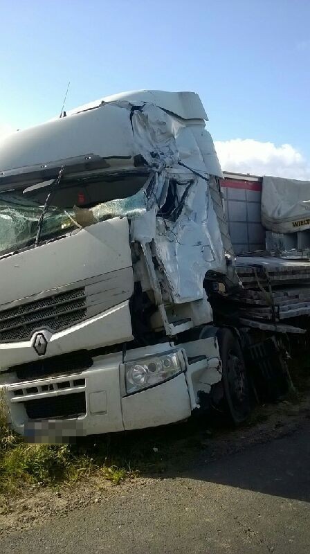 Do groźnie wyglądającego zdarzenia drogowego doszło we wtorek (3 października) w Kartoszynie. Przed godziną 11:00 zderzyły się dwa samochody ciężarowe.
