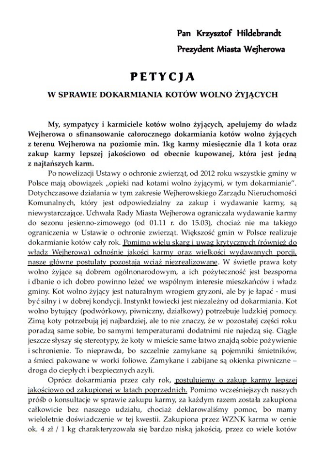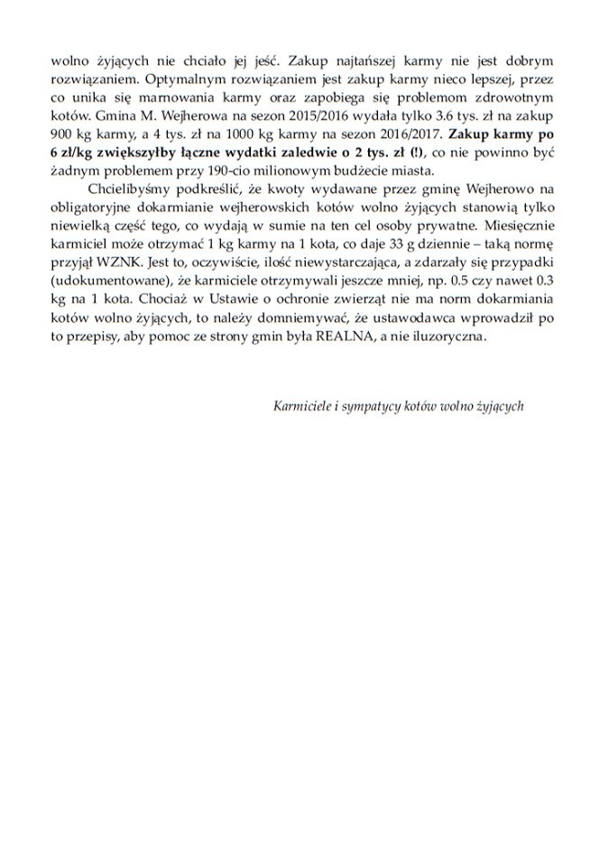 Kwestii, na które skarży się przedstawiciel Buraska, jest kilka. Najwięcej kontrowersji budzi jakość karmy, którą Wejherowo kupuje dla wejherowskich kotów. Sprawa jest jednak wielowątkowa.
