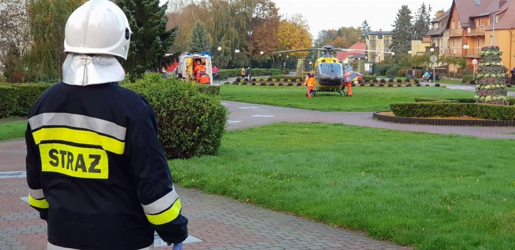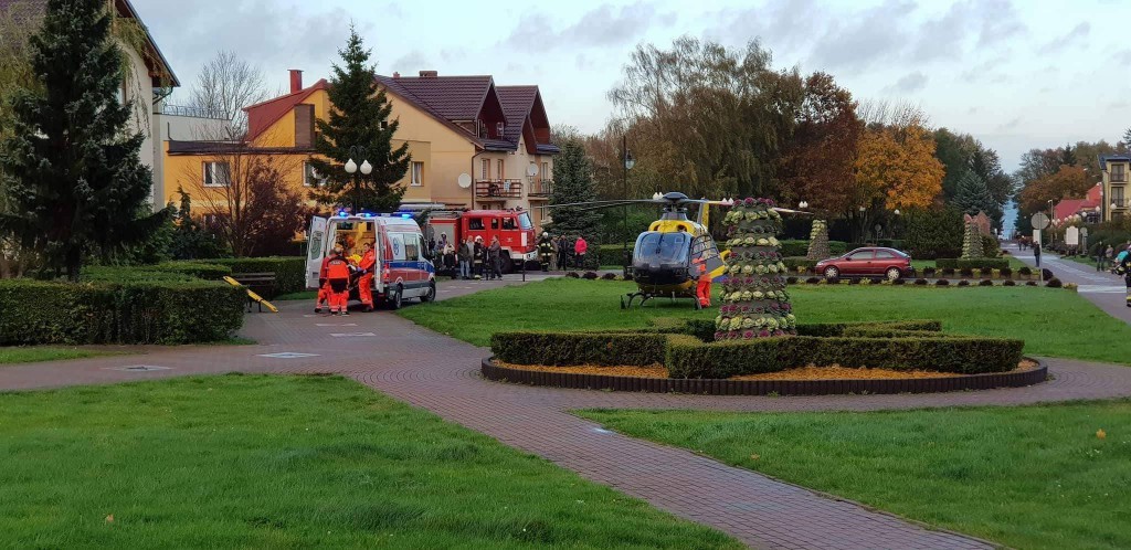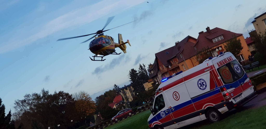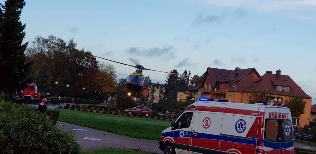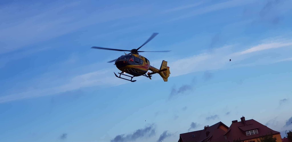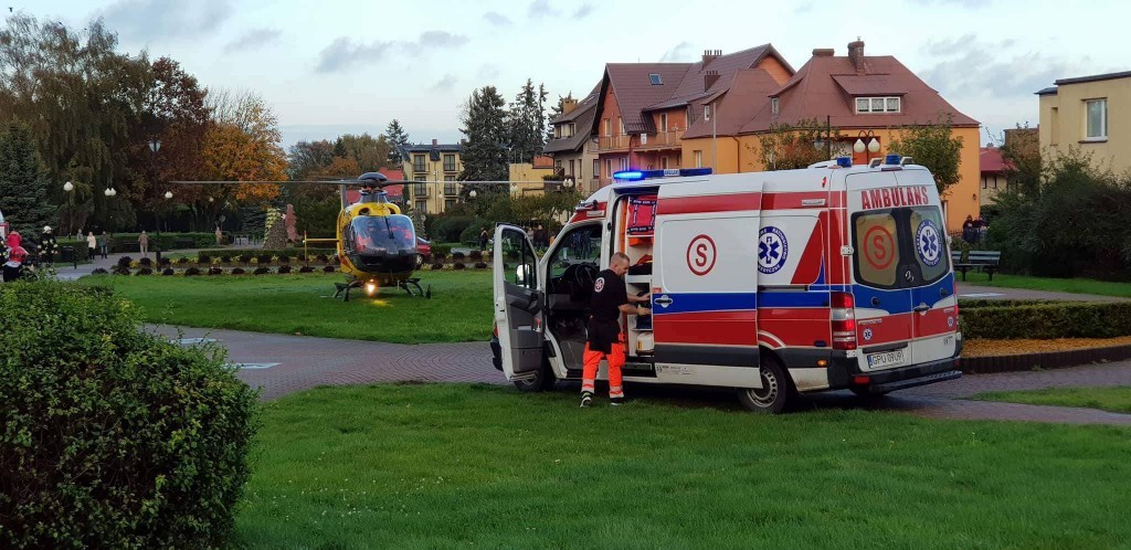 Po poszkodowanego przyleciał śmigłowiec pogotowia lotniczego z Gdańska, by przetransportować go do szpitala.