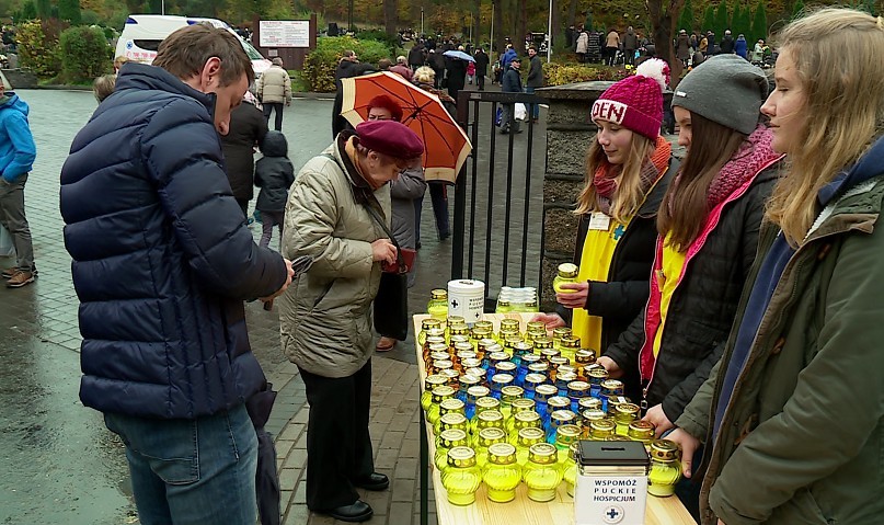 – Około pół tysiąca wolontariuszy na trzydziestu cmentarzach, bliżej i dalej Pucka, obdarowywało odwiedzających niebieskimi i żółtymi zniczami. Dzięki temu udało się zebrać około 120 tysięcy złotych. To rekordowy wynik – mówi Anna Jochim-Labuda, prezes Puckiego Hospicjum pw. św. Ojca Pio. – Spotykamy się naprawdę z ogromnie pozytywnym odbiorem. Bardzo cieszymy się, że przy okazji odwiedzin tych, których już z nami nie ma, jesteśmy obdarowywani ciepłymi słowami i wsparciem finansowym – dodaje.