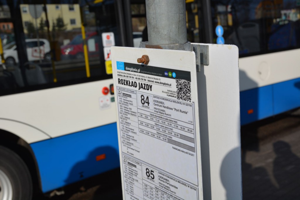 Na linii 84 wprowadzony zostaje nowy wariant trasy. Pierwszy kurs w dni powszednie rozpoczynać się będzie na przystanku „Reda – Aquapark 01” o godzinie 6:54. Następnie do Centrum Handlowego „Port Rumia” trasa przebiegać będzie tak samo, jak w przypadku linii 87, czyli ulicą Morską w Redzie oraz Kosynierów w Rumi, z zatrzymaniem na przystankach „Reda – Aquapark 01” oraz „Jeziorna 01” (na żądanie).