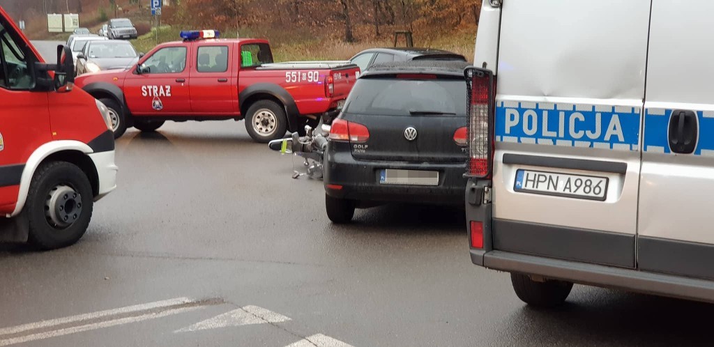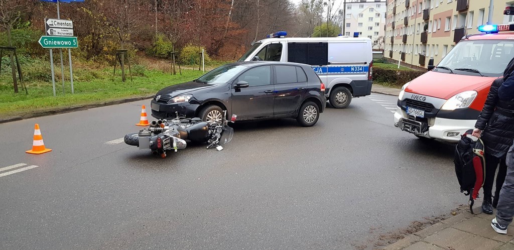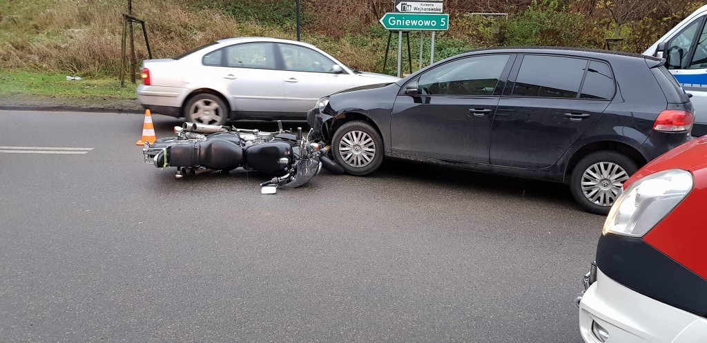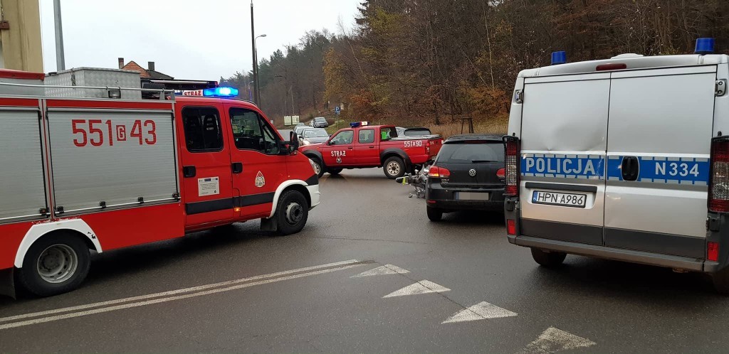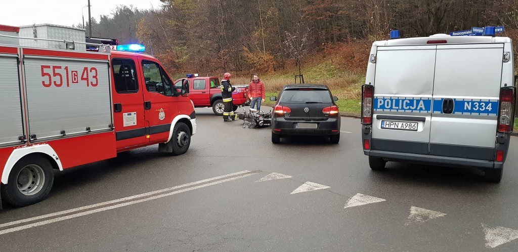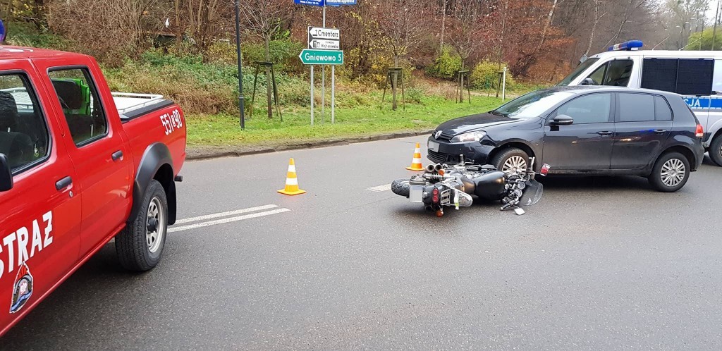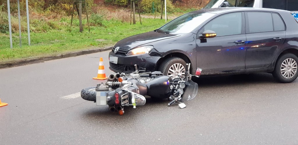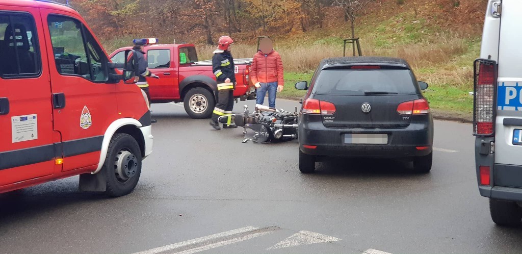 Do zdarzenia doszło w środę (22 listopada) tuż po godzinie 8:00. Uszkodzenia samochodu osobowego były niewielkie, ucierpiał natomiast kierowca motocykla.