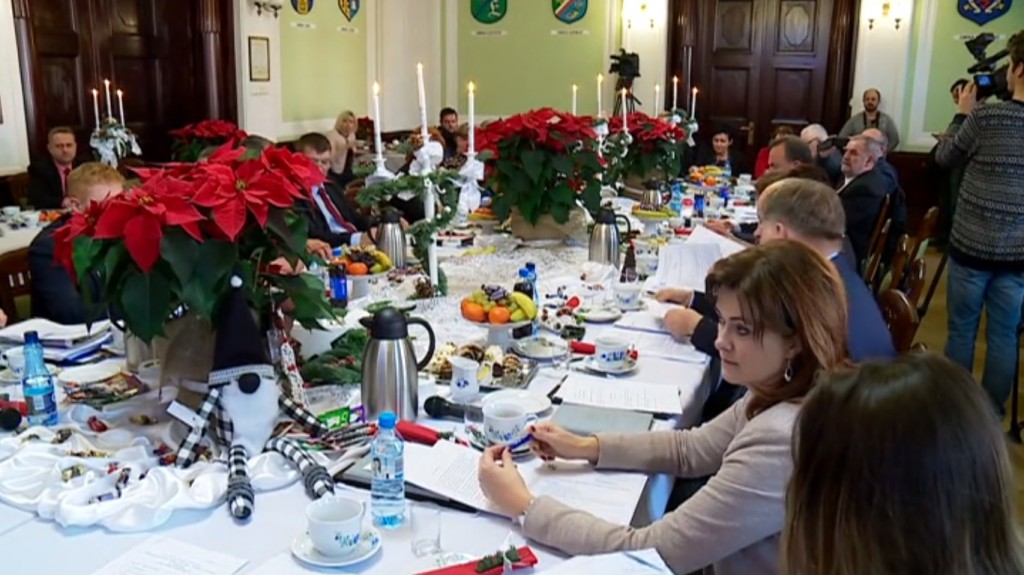 Przed sesją odbyło się spotkanie opłatkowe, podczas którego radni i zaproszeni goście podzielili się opłatkiem i złożyli sobie życzenia.